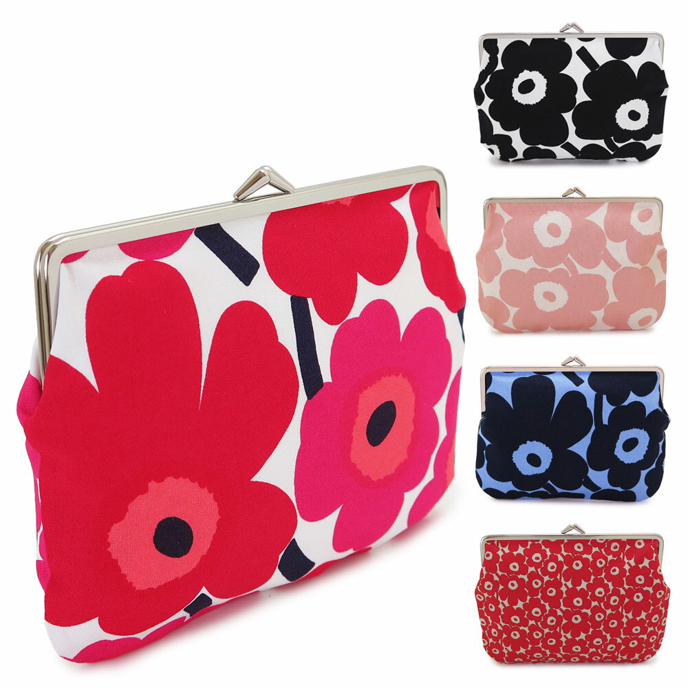 大きいお花のウニッコ柄を明るくキュートに施したマリメッコブランドポーチがおすすめ。たっぷりサイズのがま口スタイルなので、パチリと手早く開口できてメイク用品などたっぷりと収納できる人気の商品です。素適なカラーも沢山バリエーションされていますよ。