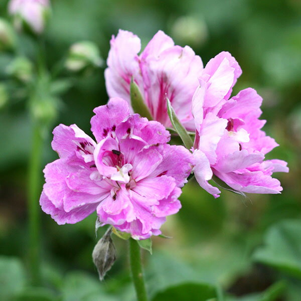 ピンク色の可憐な八重咲のゼラニウム「アイビーゼラニウム」です。1輪のお花が大きめで、葉っぱはアイビーに似た形をしていて光沢があるので、お花を含めて華やかな印象があります。