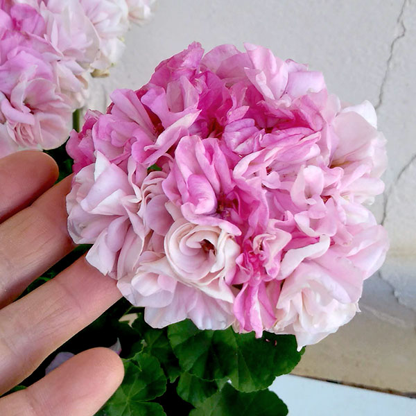 花びらが多い八重のゼラニウムです。薔薇みたいな雰囲気もあって豪華で可愛いですね。色もピンクのグラデーションでオシャレ。5号鉢入りです。日なたを好みますので明るい場所に置いてあげてくださいね。