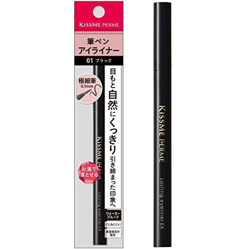 キスミーフェルムのお湯でオフできるラスティングアイライナーで極細筆で自然にくっきり描けていいなと思いました。ウォータープルーフで汗や水に強くていいなと思いました。