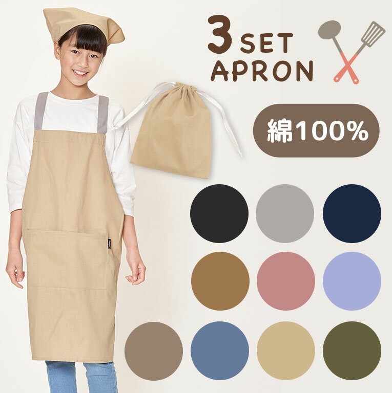 こちらのエプロンセットがオススメです。エプロン&三角巾&巾着の3点セットになっています。エプロンは肌触りが良いので着やすいです。ストレッチ性があるので動きやすいです。生地がしっかりしているので擦れたりしないです。オシャレなデザインなのでとても素敵です。