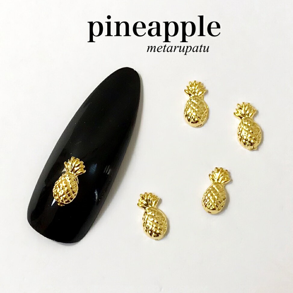 ゴールドのパイナップルのネイルパーツはいかがでしょう?可愛いデザインでネイルのアクセントに使うのにぴったりだと思います。5個セットで一度に全部使っても爪ひとつだけに使っても可愛くて個性的なネイルに仕上げられると思います。