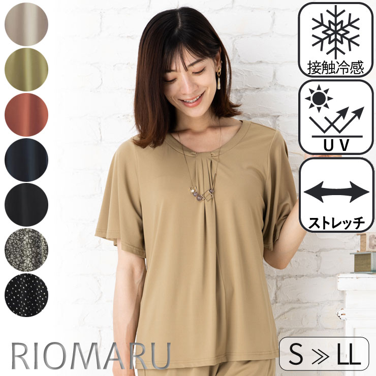 UVカット・接触冷感生地の半袖カットソーブラウスは如何でしょう。ボウタイ風ヨークタックがエレガントなカラバリ7色、プチプラだから色違いでコーデしやすくお薦めですよ
