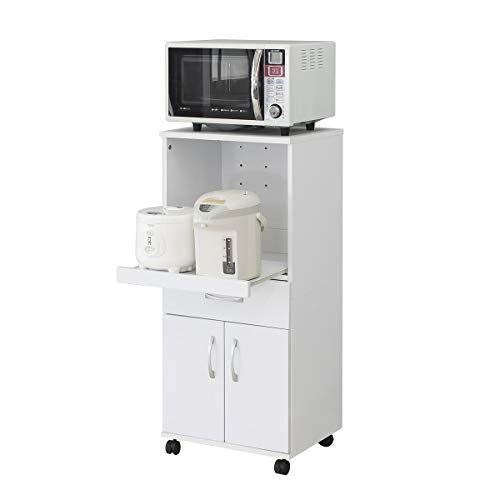 省スペースにぴったりのキッチン家電ラックです。レンジやスライド棚にはポットに小型炊飯器がすっきり収納可能です。引き出し部分には小物を収納できるのでキッチンにおすすめです。