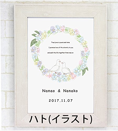 縁起の良い白い鳩がデザインされている結婚式にぴったりのウェルカムボードです。ホワイトウッドのフレームがセットになっているので素敵な思い出としてお部屋のインテリアとして飾ることができます。
