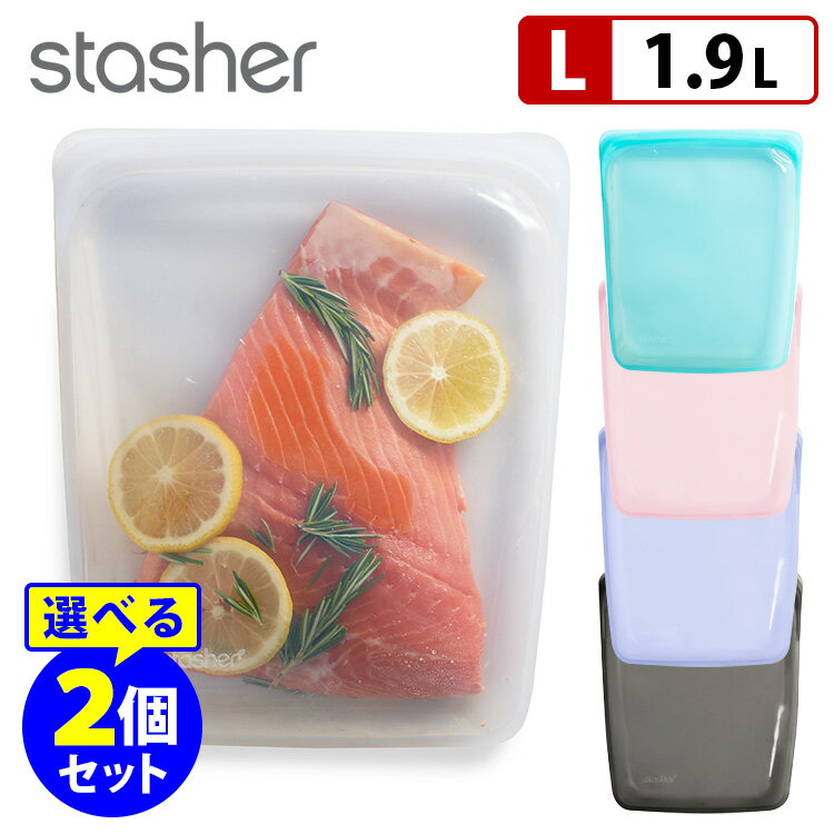 スタッシャーのおしゃれなシリコンバッグです。選べる2個セット。冷蔵や冷凍、電子レンジであたためる、食洗器での洗浄など、繰り返し使えますよ。