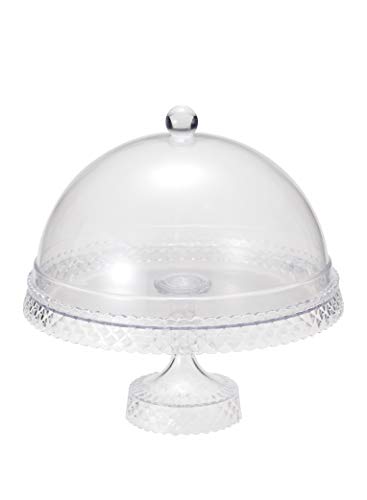 プラスチック製のケーキドームです。お子様がいらっしゃるとのことですので、ガラスよりも安全で、軽くて扱いやすいと思います。蓋があるので、テーブルでの保存にぴったりだと思います。