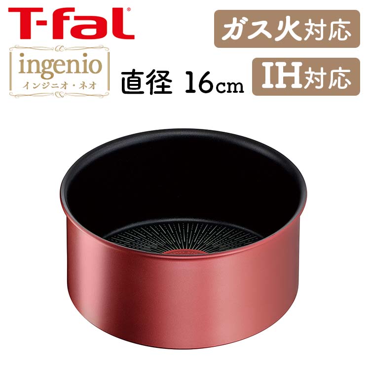 IH・ガス火対応T-fal取っ手が取れる片手鍋φ16cmサイズは如何でしょう。インジニオ・ネオシリーズのルージュは6層からなるチタン・アンリミテッドコーティングとお知らせマークで焦がさず調理しやすくお薦めです