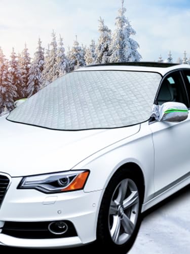 フロントガラスの霜、凍結、積雪防止対策がしっかりとできます。バックミラー保護カバーも付いており、バックミラーも一緒に保護できます。