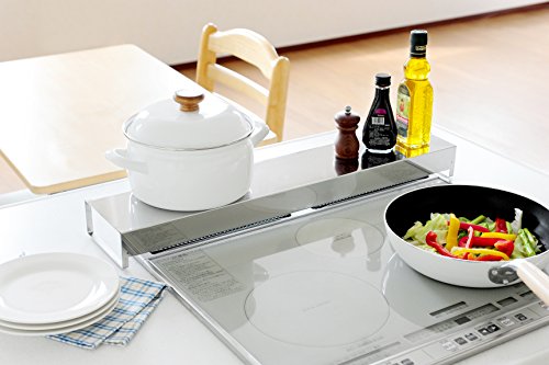 調理での油ハネで汚れやすいコンロの排気口をカバーして汚れをつきにくくすることが出来るラックです。耐荷重が8kgあるので調味料や鍋を置いて使うことができます。