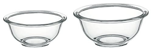 イワキの丸型ボウルです。耐熱ガラス製の500mlサイズですし、キッチンで使い心地がいいと思います。900mlも付いていますよ。