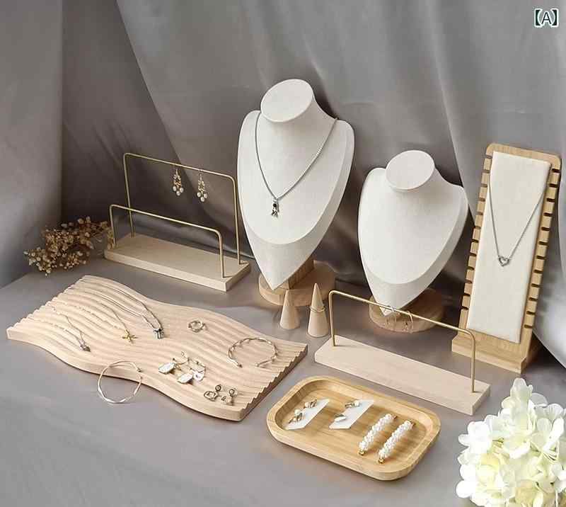 お気に入りのネックレスはトルソーや2軍は縦型ネックレスディスプレイ、ピアスは波状ブナ材パレットと選べるアクセサリー木製ディスプレイは如何でしょう。円錐形の木製リングホルダーやブナ柾目ラウンドパレットも素敵でお薦めです
