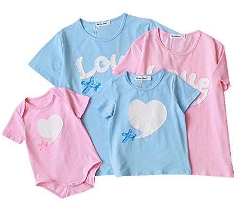 やさしいトーンのブルーとピンクのTシャツです。パパママ、キッズ用はもちろんですが赤ちゃん用ロンパースまであるので喜ばれますよ。