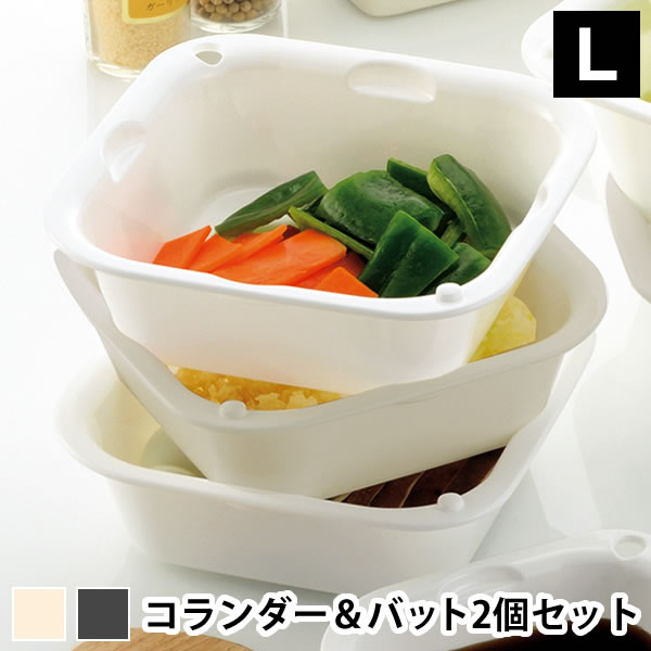 日本製・Richellの電子レンジ・食洗器対応でLサイズのコランダー&バット・2個セットです。角型・2.5L容量のシンプルでオシャレなデザインになっており、水切りや下ごしらえ、保存容器などに使える抗菌加工のコランダー&バットです。コスト的にも他と遜色のないものですので、良いのではないかと思います。