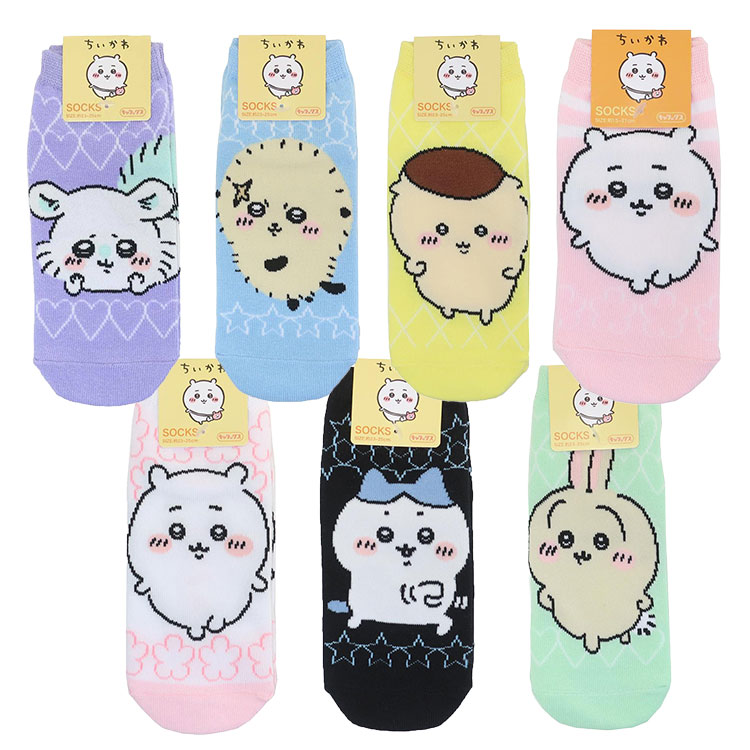 大人用のキャラクターソックスだったら、ちいかわはどうですか。ワンポイント刺繍もありますが、子供相手なのでキャラクターがちょっと目立つ方がいいかも。いろいろな種類があるので、洗い替えにもいいですね。