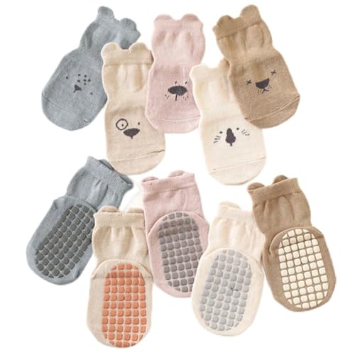可愛らしい赤ちゃんの足がさらに可愛らしくなる、動物をモチーフにしたベビー靴下5足組です。動物の顔がプリントされ、履き口耳がついている可愛らしいデザインの靴下です。底面にゴム製滑り止めが付いているため、フローリングの床での滑りを防止し、歩き始めた赤ちゃんにピッタリです。やわらかいコットン製のため通気性と吸湿性が良く、耐久性にも優れ、伸縮性もあるため赤ちゃんが快適に履くことができます。