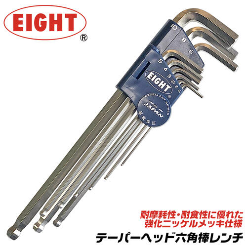 こちらの、エイトの六角棒レンチセットは如何でしょうか?テーパーヘッドで強化ニッケルメッキ仕上げのプロ仕様です。安物は弱くてすぐにダメになるものがありますので注意です。