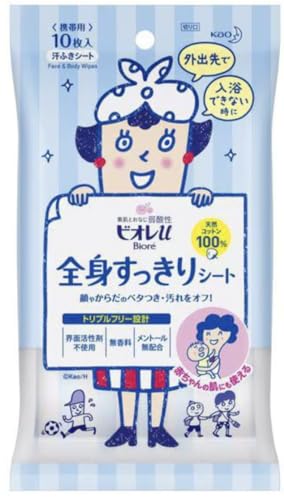 ビオレの薬用デオドラント「全身スッキリシート」です。快適な使い心地の10枚セット。外出先での汗対策にぴったりですし、重宝しますよ。