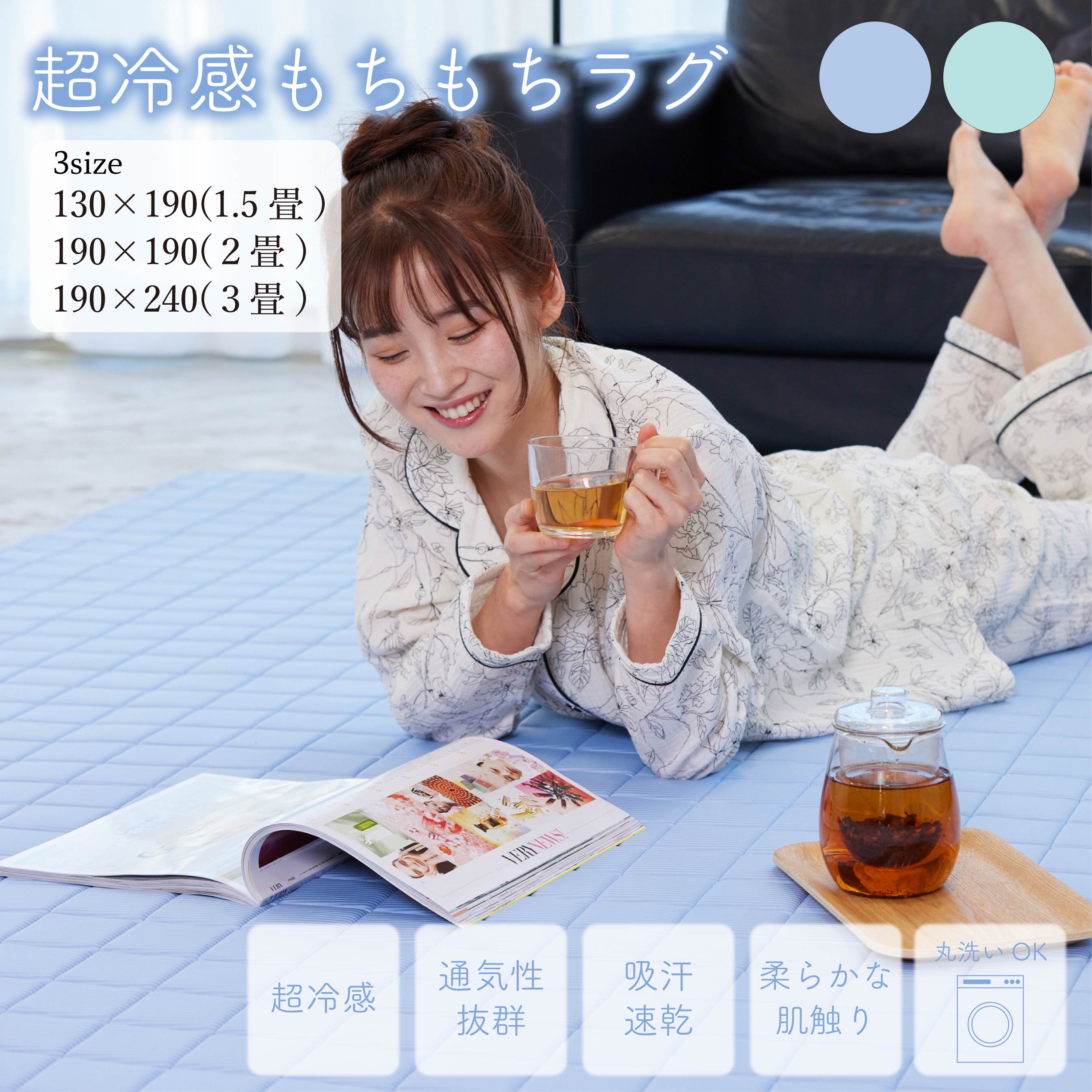こちらの、夏用の清涼感のあるおしゃれなカーペットは如何でしょうか?接触冷感作用で涼しく、もちもち触感で心地よいです。丸洗いできるラグマットです。