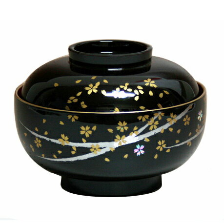 桜の柄が金色で入っている、おめでたい色合いのお椀です。一般的にはお椀は赤のイメージだと思いますが、落ち着いているものをお好みならこちらが良いかと思います。