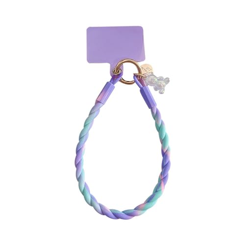 かわいいマルチカラータイプの編み込み風デザインが施されているシリコーンストラップはいかがですか。テディベアのチャームも付いています。