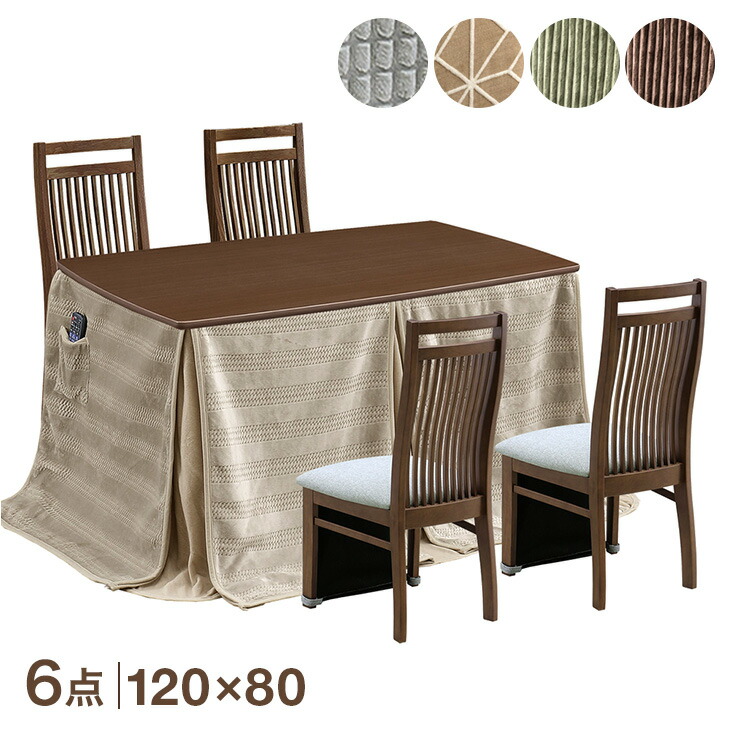 オーク突板のハイタイプのダイニングこたつ4人用6点セットはいかがでしょうか?おしゃれなこたつ布団と椅子4客のお得で統一感を出せるこたつセットなので、おススメですよ!