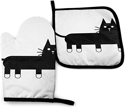 無表情な黒猫がシュールでかわいいですね。しかも微妙に見切れているのが何とも言えずユーモラス。モノトーンでおしゃれな雰囲気なのでキッチンでも悪目立ちしませんね。片方は鍋敷きですが、取っ手をつかんだり底を支えたり鍋つかみのような使い方もできるので用途が広がり却って便利かなという気もします。