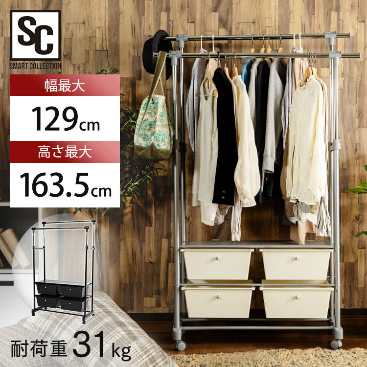 こちらのチェスト付きのハンガーラックは引き出しも付いており、省スペースに設置できます。高さ調節もでき、耐荷重31キロと丈夫な作りもいいですね