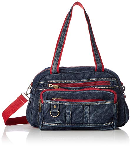 デニム素材のミニボストンバッグです。ポケットが豊富で細かく整理整頓ができる収納力があります。持ち手の他に取り外せる肩掛けショルダーが付属します。