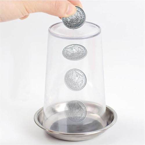 コインマジックができるアイテムです。透明なガラスコップをコインが通り抜ける、あのマジックができます。何度見ても仕掛けがわからず、不思議ですよ。宴会などで披露するとみんなから拍手喝采を浴びます。