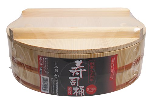 お薦めはこちらのフタ付きの寿司桶です。炊いたお米は水蒸気と共に美味しさもどんどん失われていくので、それを防ぐために蓋付きが断然いいです。ほのかに香る木の匂いが食欲をそそります。タガがプラスチックなので錆びずらく、長く愛用できると思います。