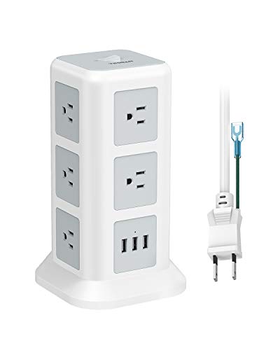 TESSANの新型タワー式コンセントです。普通の横型の電源タップより75%省スペースで、配線がスッキリします!延長コード3mの電源タップで、11個AC口+3USBポートのタコ足です。過負荷保護スイッチと雷ガードもついています。PC接続に向いているアースコードプラグなので、電磁波が気になる方にもおすすめですよ!