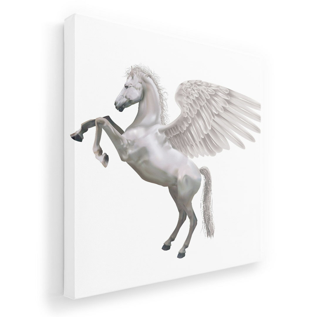 天翔ける馬ペガサスのモダンアート455×455mmスクエアサイズは如何でしょう。力強い筋肉隆々の白馬を南側に飛翔するように飾ると風水的に運気アップになりますよ