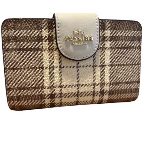 チェック柄がおしゃれなこちらのコーチの2つ折り財布はいかがでしょうか。コンパクトながらカードポケットも多く、収納も充実しています。