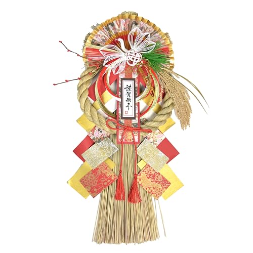 五穀豊穣の願いを込めた華やかな特大しめ縄お正月飾り65㎝サイズは如何でしょう。紅白の水引に金糸や鶴と松葉の縁起物は長寿繁栄になりイイ感じですよ