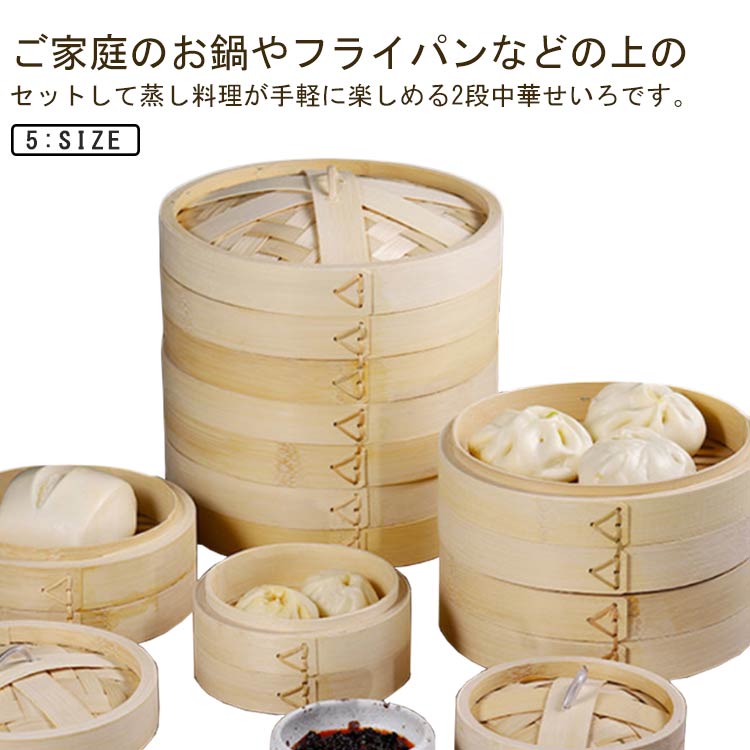 こちらの中華せいろは1人用にもピッタリのサイズもあり、2段式なのもいいです。温野菜や蒸し料理など万能に使用でき、竹製なのもいいです