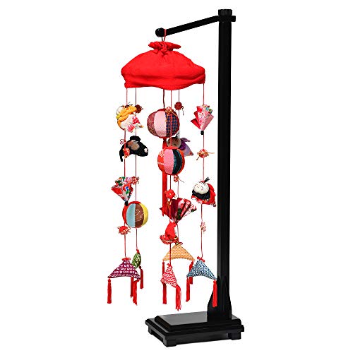 ちりめん細工のつるし雛で、レトロな暖かみがあり、味があります。這い子や金魚など25種類の縁起物を吊るされており、細部まで丁寧に出来ていますよ。程よいサイズで、スタンドも付いているので、ちょっとしたスペースに飾りやすいです。