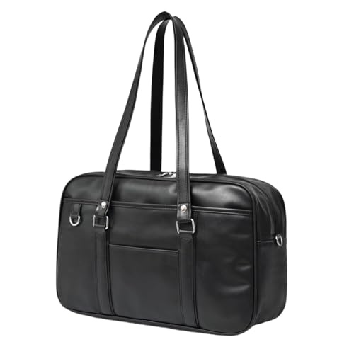プチプラで購入できるこちらのスクールバッグはいかがでしょうか。シンプルな黒無地の合皮製で、どんな制服にも似合います。A4対応でマチも広いので荷物もたっぷり入りおすすめです。