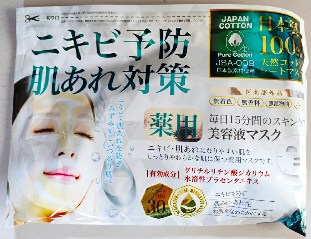 こちニキビ対策には、こちらのシートマスクは如何でしょうか?ユニセックスで使える天然コットンの薬用スキンケア商品で毎日続けやすいコスパの良いシートマスクです。