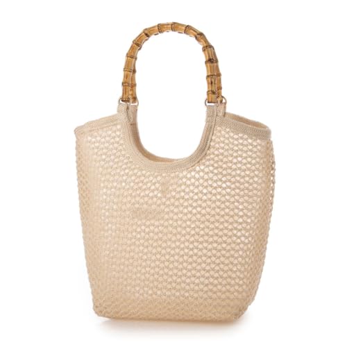 メッシュ状のかご風素材とバンブーハンドルを組み合わせた高級感のあるシンプルなデザインで、おしゃれに使えます。マチがあり、収納力が高いので便利です。