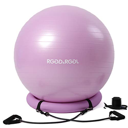 RGGD&RGGLの55センチのバランスボールです。厚い固定リングとトレーニングチューブがついていて、ダイエットにも効果的ですし、耐荷重997㎏という強さなので安定感安心感もありますよ。