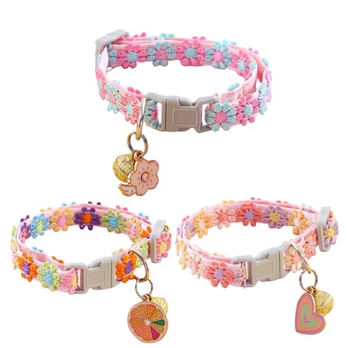 愛猫や愛犬をさらに愛らしくする首輪3個セットです。敏感なペットの肌を傷つけることなく装着できる、柔らかいポリエステル製の首輪です。布製のため通気性もよく、幅約1.1cm、長さ19~32cmで、長さは自由に調整することができ、鮮やかな花をつなぎ合わせた可愛らしいデザインで、猫はもちろん、子犬にも使用できます。