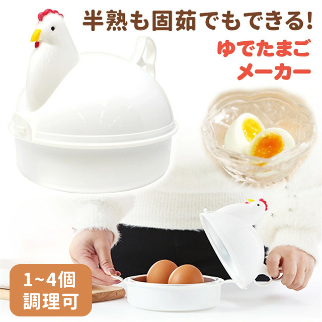 こちらの、ニワトリ型のカワイイ茹で卵メーカーは如何でしょうか?電子レンジで簡単に茹で卵が作れます。一人暮らしの方にも助かる1個から4個まで一度に作れて、半熟も固茹でも自由に作れます。