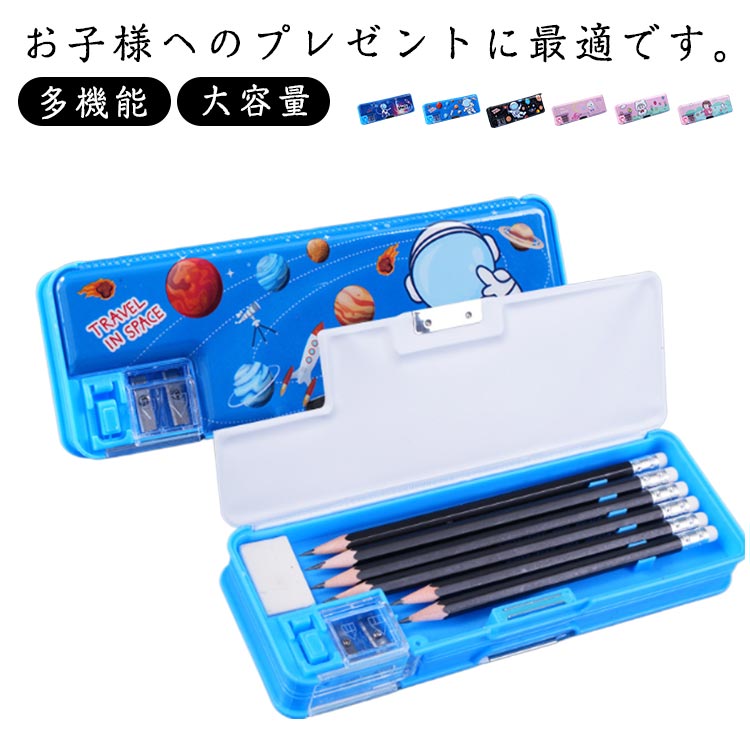 かっこいいキャラクターデザインの鉛筆削り付き筆箱はいかがでしょうか?小学校の入学祝いにピッタリの小学校で使える両面開きで多機能なペンケースなので、おすすめですよ!
