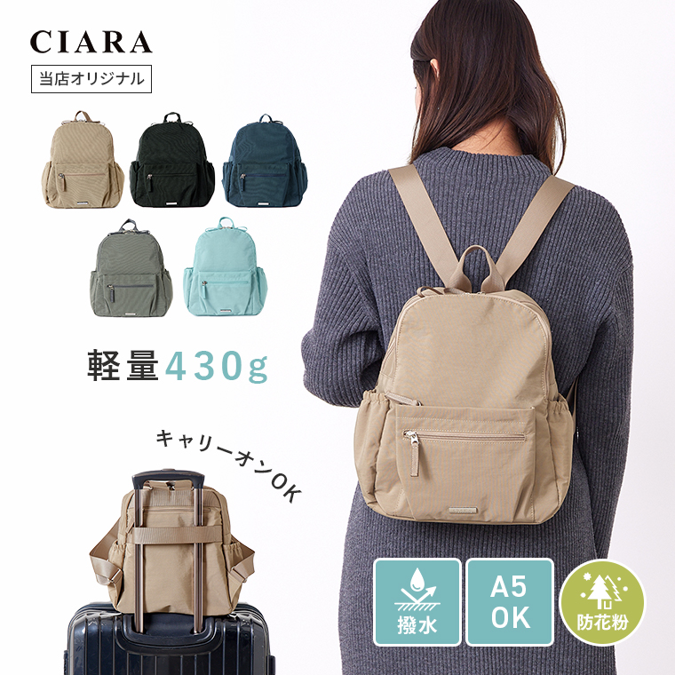 こちらの小ぶりのリュックサックは撥水性にも優れており、ミニサイズでキレイめコーデにも。カラーも選ぶことができ、花粉の付着も防ぐことができるのでこれからの季節にも良いです