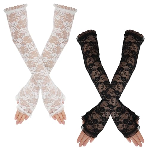 かわいいフラワーデザインタイプのレース生地が使われたアームカバーはいかがですか。長さは43センチで、カラーは2色あります。