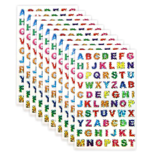 キラキラ光るラメ素材が使われたアルファベットシールはいかがですか。シールサイズは約12ミリで、1セットに10シート入っています。