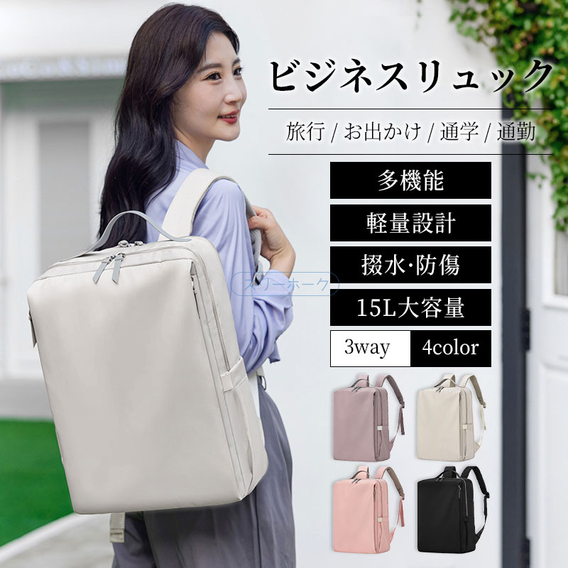 淡い色合いと洗練されたデザインで、女性がお使いになるのにもぴったりなビジネスリュックです。見た目はコンパクトながら大容量設計で、ノートパソコンも楽々入ります。