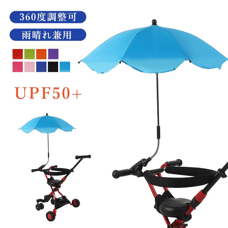 360°角度調整なベビーカー用の傘スタンドは如何でしょうか。クリップ付きで簡単に取り付けができます。雨の日や暑い日に傘をさして移動が快適できるので、オススメですよ。