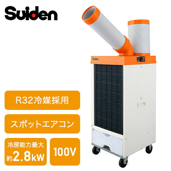 業務用途に気軽に扱える100vタイプのスポットエアコンピンポイントに心地よい風を送風できて、廃熱はダクトで屋外に出しやすいから、作業捗るコスパの良い一台です。大きすぎない程よいサイズ感も嬉しい。